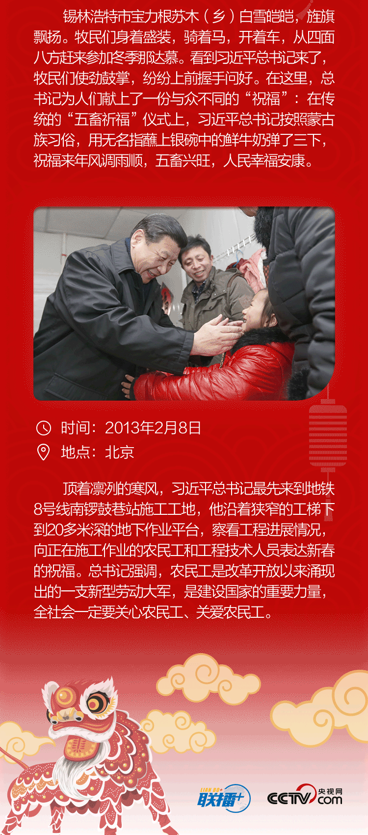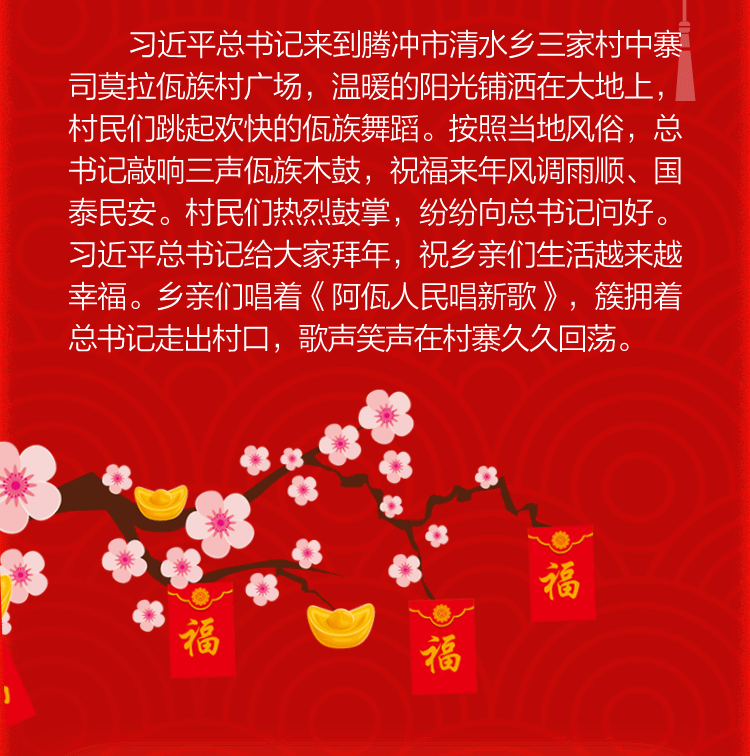 春节将至,中华大地到处洋溢着喜庆的气息,氤氲着幸福的味道。无论国事多么繁忙,习近平总书记总要抽出几天时间走到群众中间,给大家拜年,并为他们送去最深情的祝福。